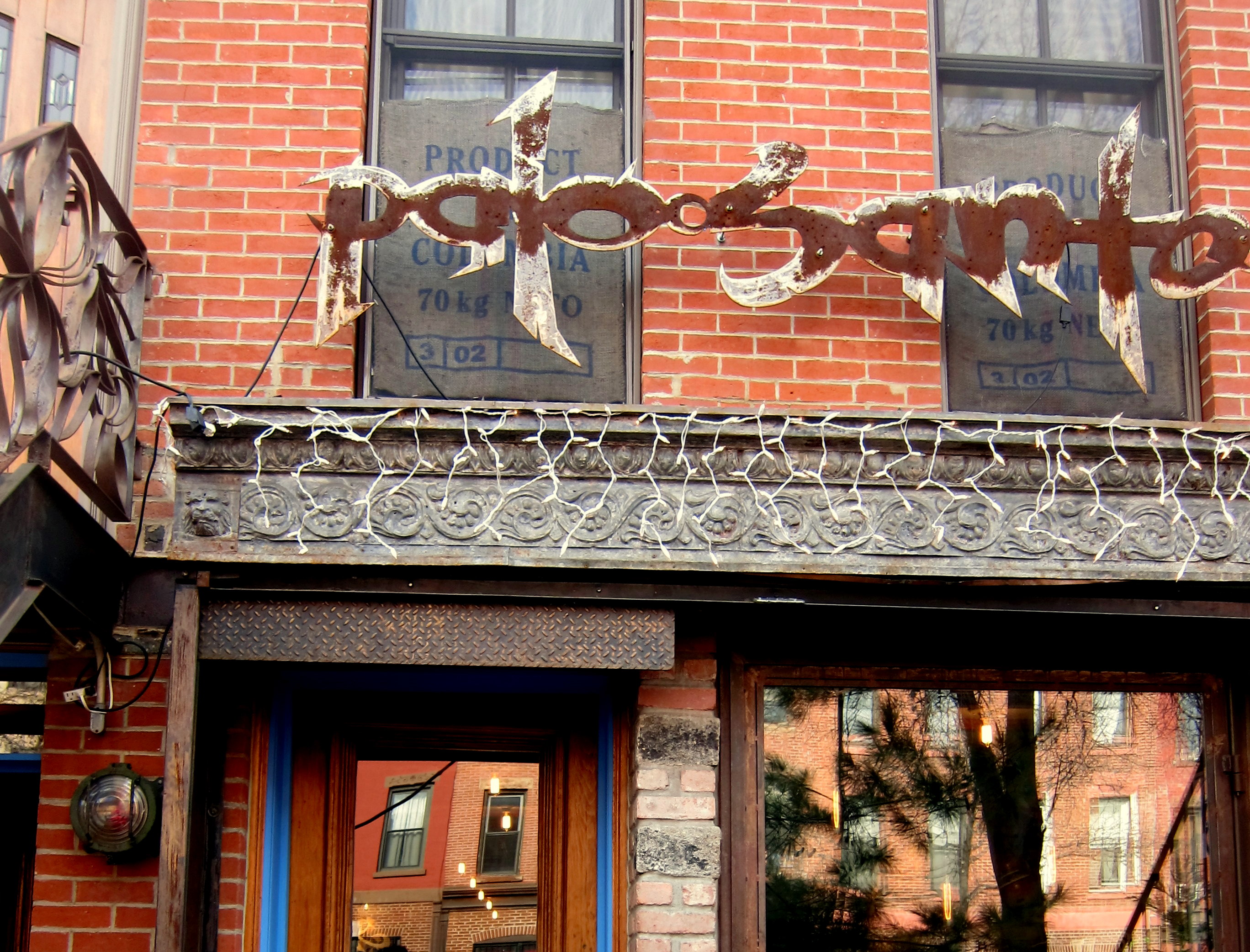 Palo Santo is a beautifully lit and charming restaurant located in an exposed brick townhouse on a quaint tree-lined street in Park Slope, Brooklyn. Its craftsman decor begins from the outside entrance with the spiral-patterned brick floor and the intricate floral wrought iron rails, which is duplicated in the restaurant’s own bicycle rack against the tree out front. The roof of the building houses a small urban farm of vegetables, and there are also fresh herbs growing in the small back garden where guests can dine on warm(er) days.