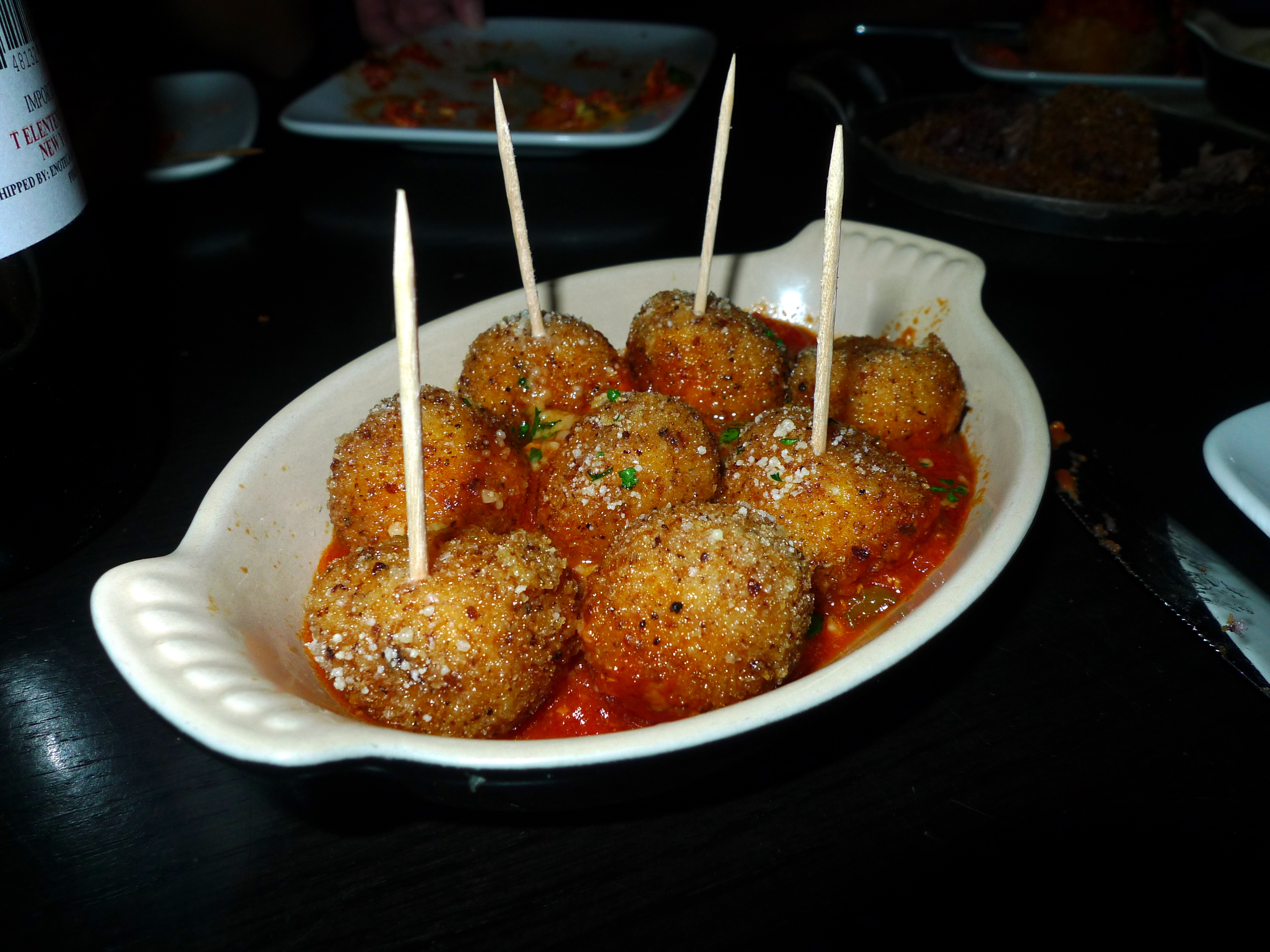 Very heavy but I adore these risotto balls with their delicate red wine-braised oxtail filling