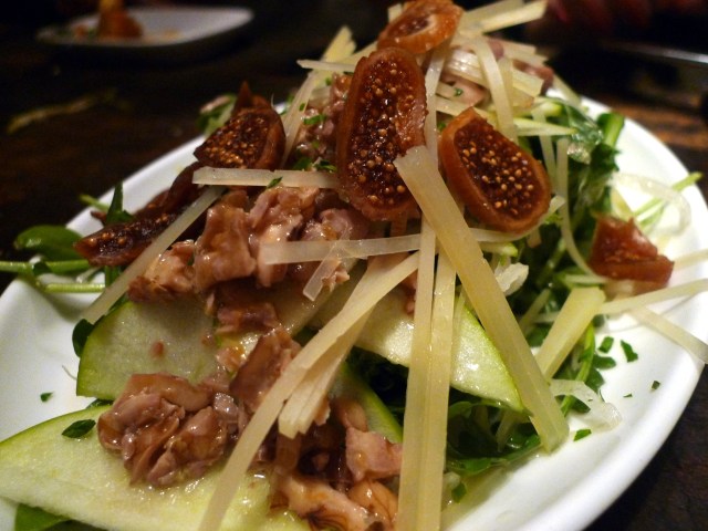 Amanida de Merdat: Arugula and Fennel salad with dried Figs, Cheese, Apple topped with Walnut and Orange Vinaigrette