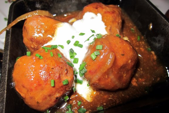 Can’t go wrong with shortrib AND brisket in a meatball, and caramelized onions are the icing on the cake
