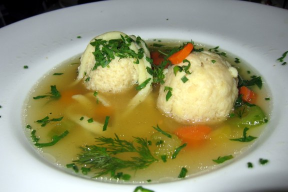 Mrs K’s Matzo Ball Soup – egg noodles, carrots, celery, chives, and dill