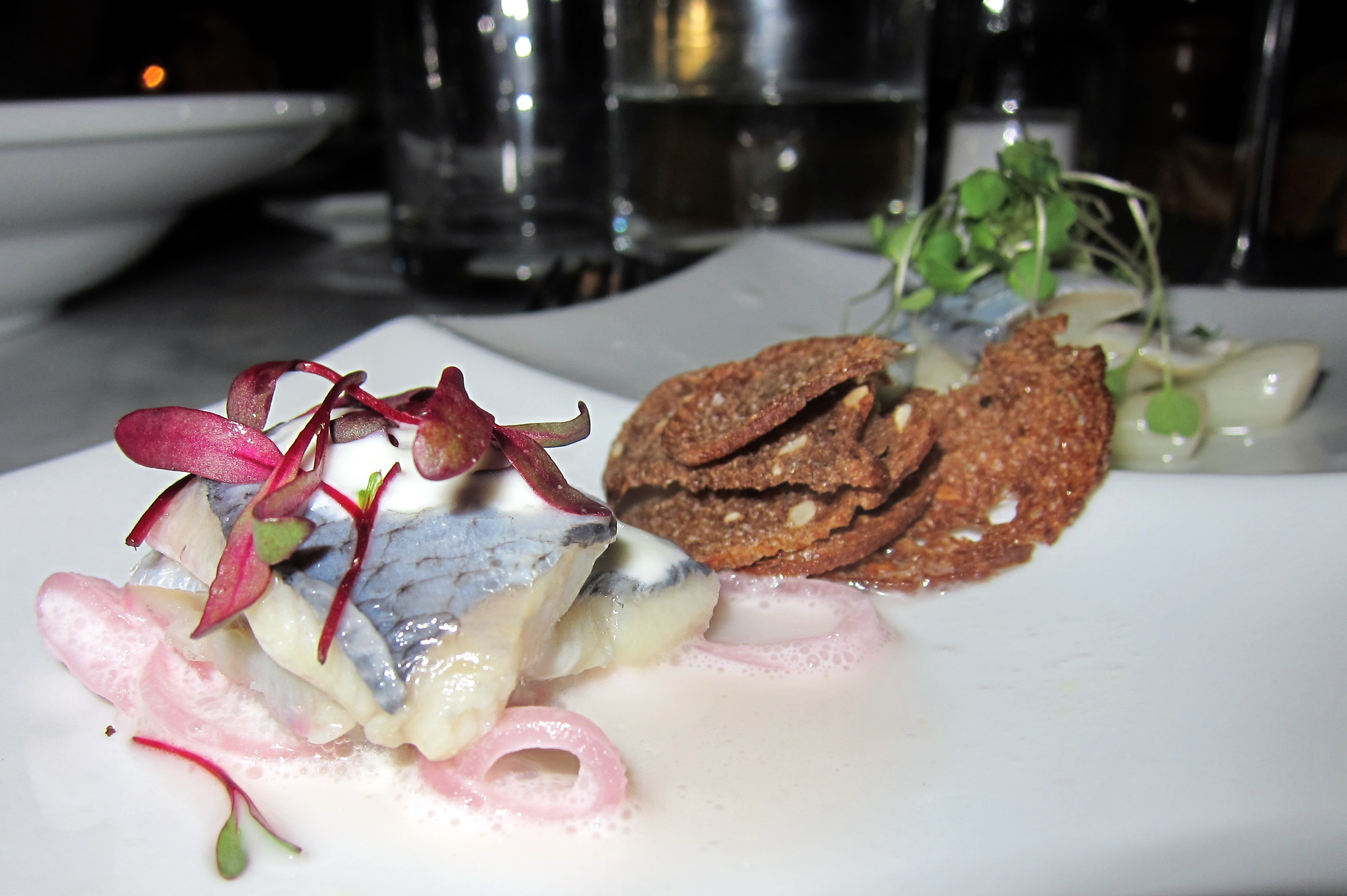Pickled Herring Two Ways – pickled onions & cream AND wasabi & yuzu