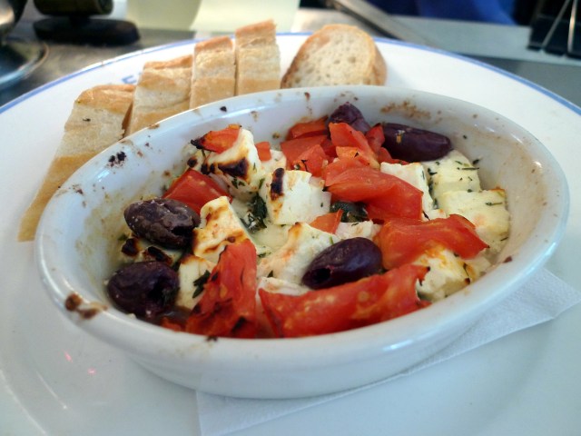 Baked Feta with capers, thyme, olives and tomatoes