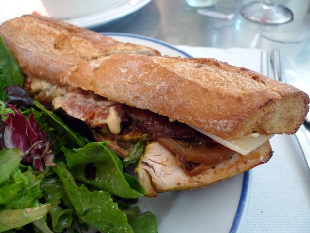 Roasted organic chicken, chipotle mayonaise, fresh parmesan, roasted tomatoes on toasted baguette (anchovies optional)