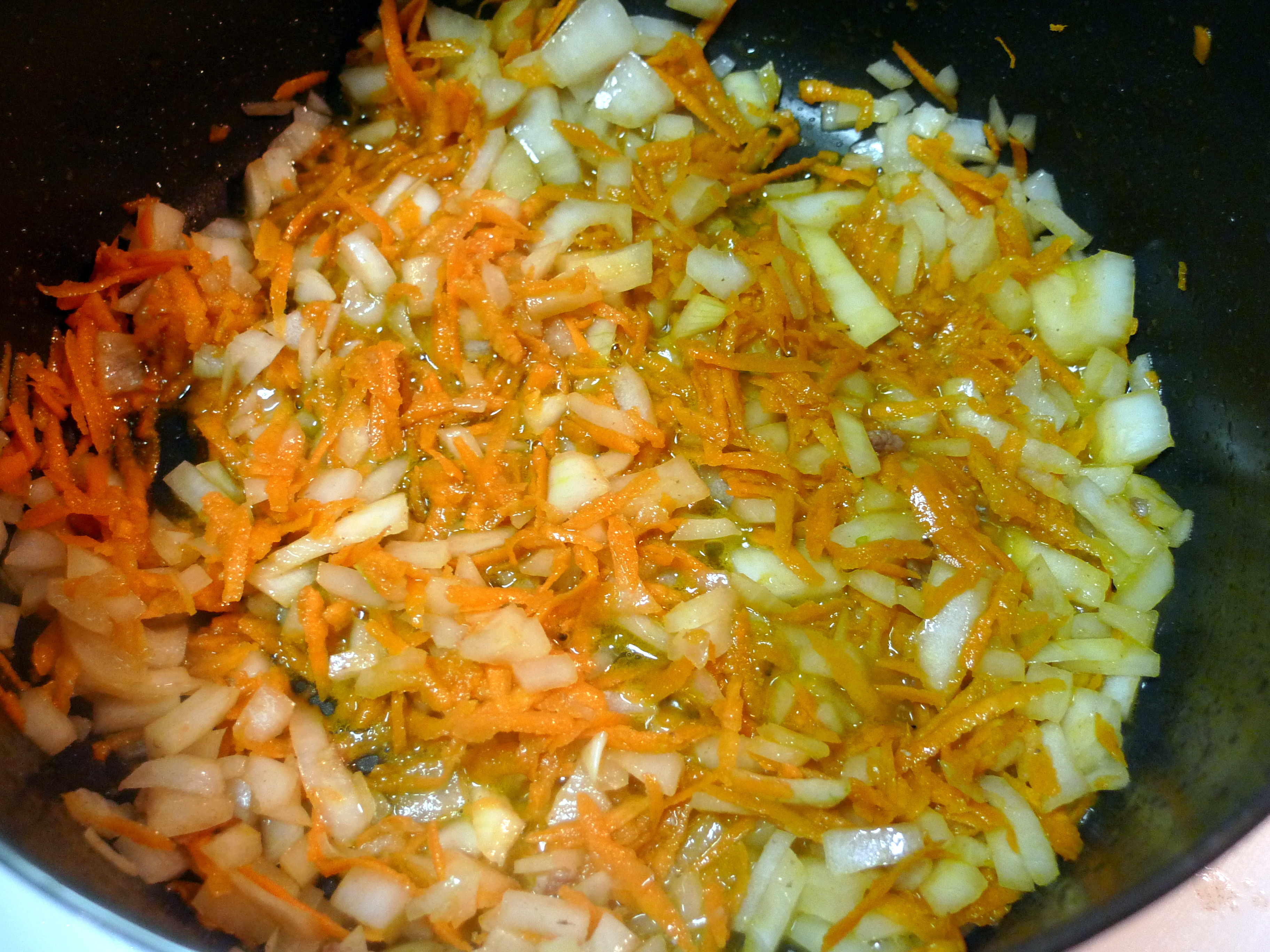 With the remaining fat still in the pan, add the onions and carrots, and stir to coat. Cook until soft, about 4 minutes.