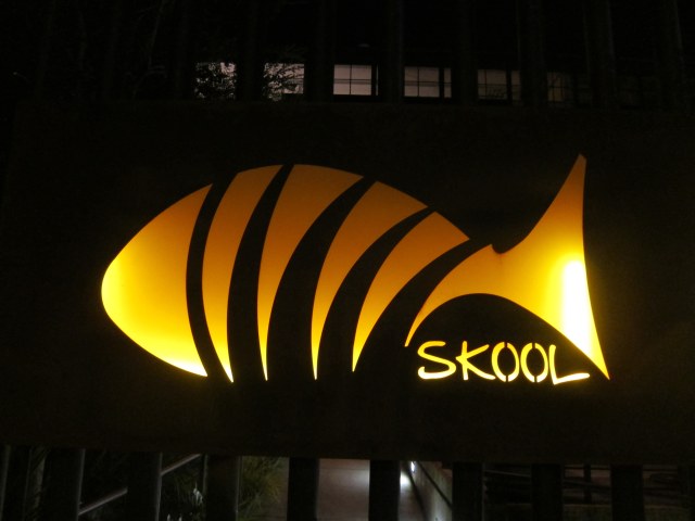 Squeezed between two freeways in the SOMA/Design District neighborhood, Skool is a gem of a seafood restaurant that our SF resident foodie friend introduced me to. From the outside, the place is unassuming, but once you get inside the gate, you are greeted by a spacious outdoor patio which would be delightful on a warm sunny day. You follow the ramp lined with leafy plants and bamboo stalks up to the lit up double doors and enter the restaurant.