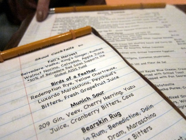 The interior has all the little details I love: open kitchen, a communal table, and a fully stocked bar. The name of the restaurant is a play on words; so there is a very adorable interplay of the 2 different “schools”. The menus are written on binder paper clipped to a board, with a #2 pencil as well. And the dishes served are delicious schools of fish. Similarly to many other local restaurants, Skool places emphasis on sustainability of its ingredients as well as design of the restaurant, sourcing local ingredients and employing local designers who use recycled and refurbished materials to create the restaurant’s ambiance.