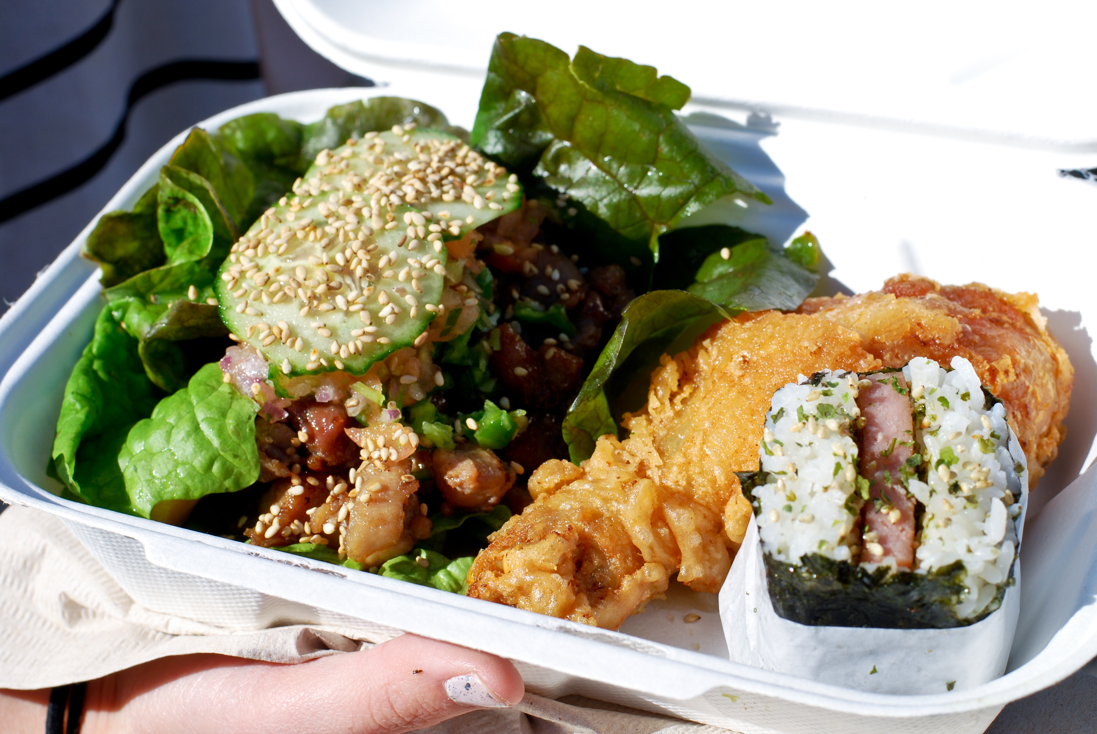 Another Asian/Chinese inspired food truck. Tried this out once and really enjoyed the Magnificent trio – a combo plate with the Kicker (Hawaiian marinated chicken taco), chinese style fried chicken drumstick, and the spammer (spam musubi).