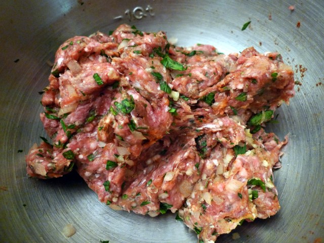 Meatballs in general are so easy to make as they provide the ultimate freedom in playing around with ingredients. I leaned more toward Morroccan keftas which include onions, cumin, cinnamon, fresh parsley, cilantro and mint. I am not a huge standalone ground lamb person, so I decided to do half beef and half lamb. I bought a pound each of beef and lamb and then made two separate batches to experiment.