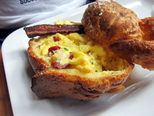 Bacon, Egg & Cheese: Soft Scrambled Eggs, Sun Dried Tomato, Applewood Smoked Bacon, Parmesan Popover