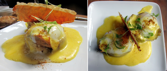 Eggs Benny: Lani’s Green Garlic “Homefries”, Crispy La Quercia Prosciutto, Meyer Lemon Hollandaise
