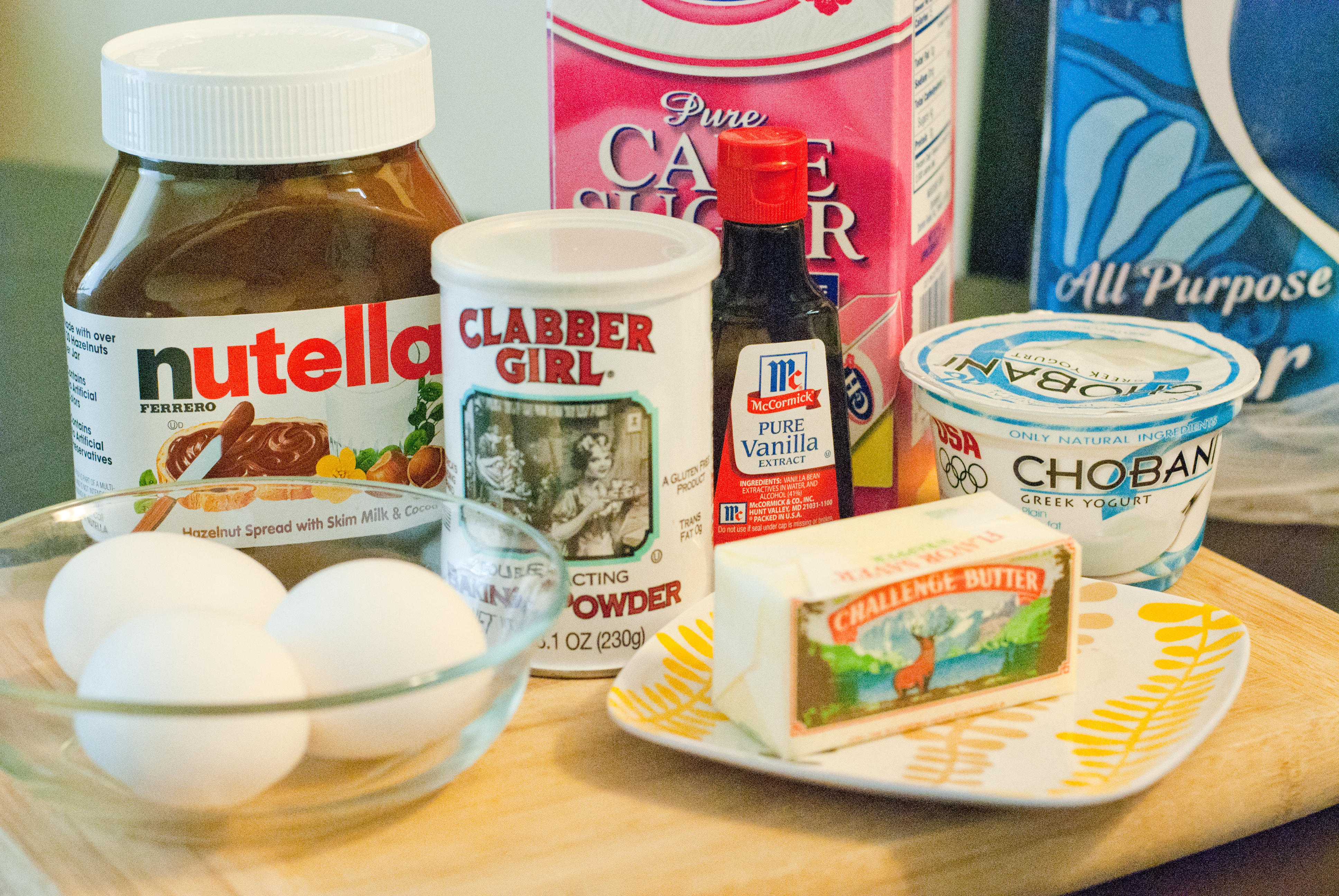 My cake seemed to turn out a bit doughy — I think I might have needed to add a bit more yogurt or less flour. I also cut down 1/2 cup of the sugar and 1/2 of the nutella asked for; the taste was fine but I found myself wanting more of that nutty flavor from the nutella. For next time — less flour, more nutella!!