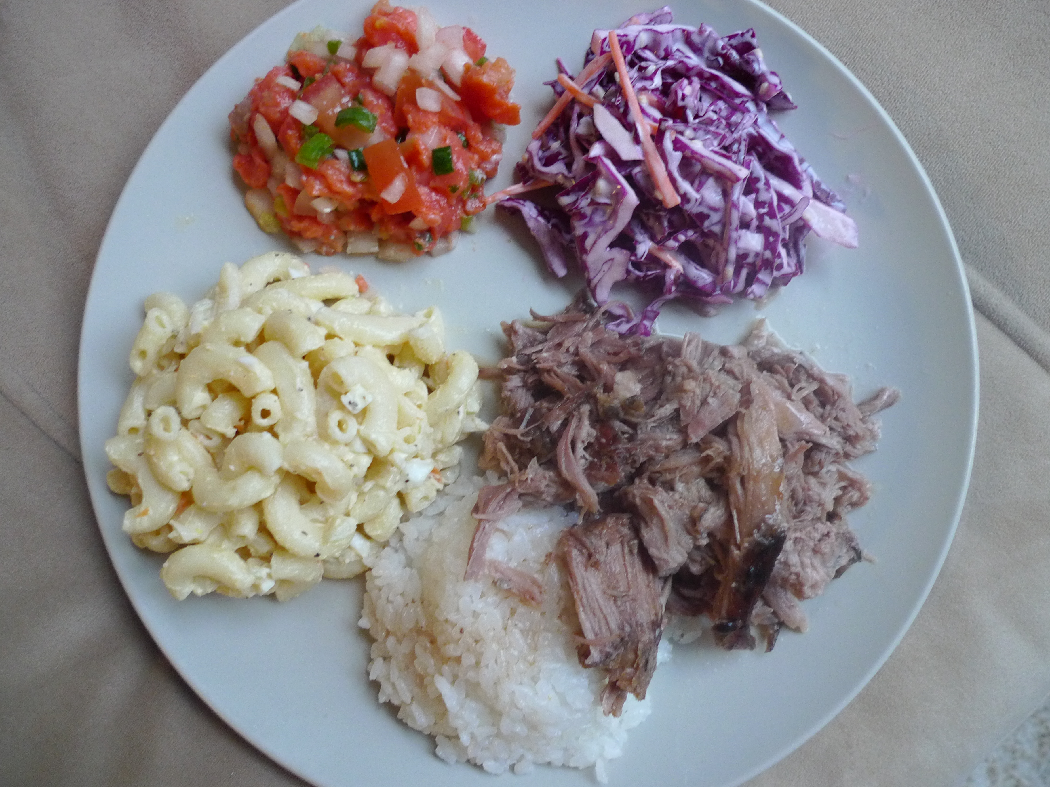 For a complete Hawaiian BBQ plate, we served the pork with rice, Cole Slaw, Lomi-Lomi Salmon and Mac Salad. So delicious!!