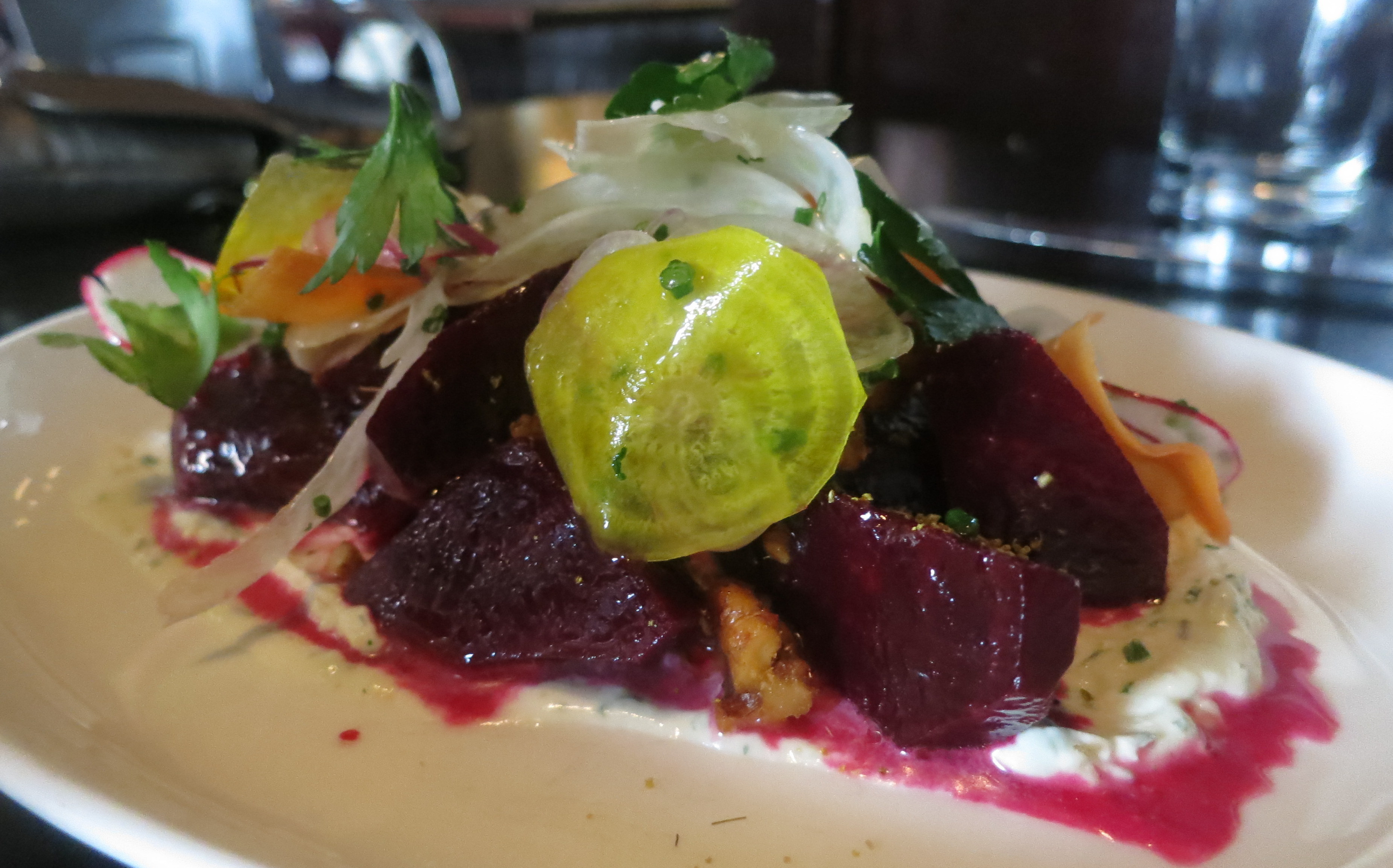 Marinated Beet Salad with robiolina cheese, soft herbs and walnuts