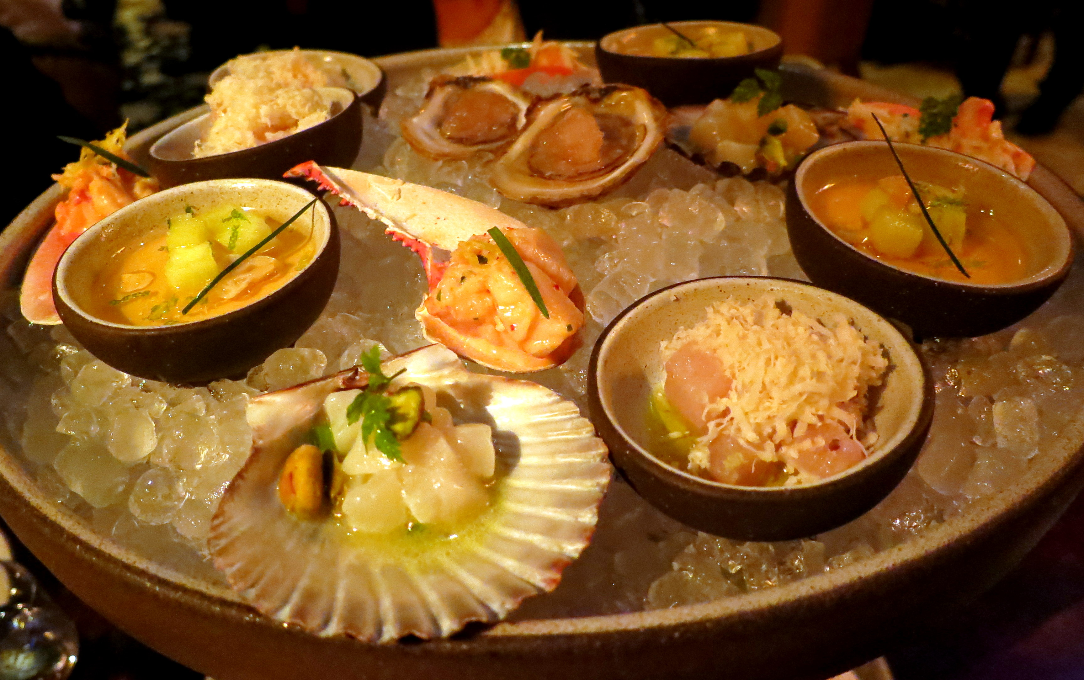 Fruits de Mer – le grand plateau – Beau Soleil oysters, hamachi, sea urchin panna cotta, crab, lobster, scallop ceviche