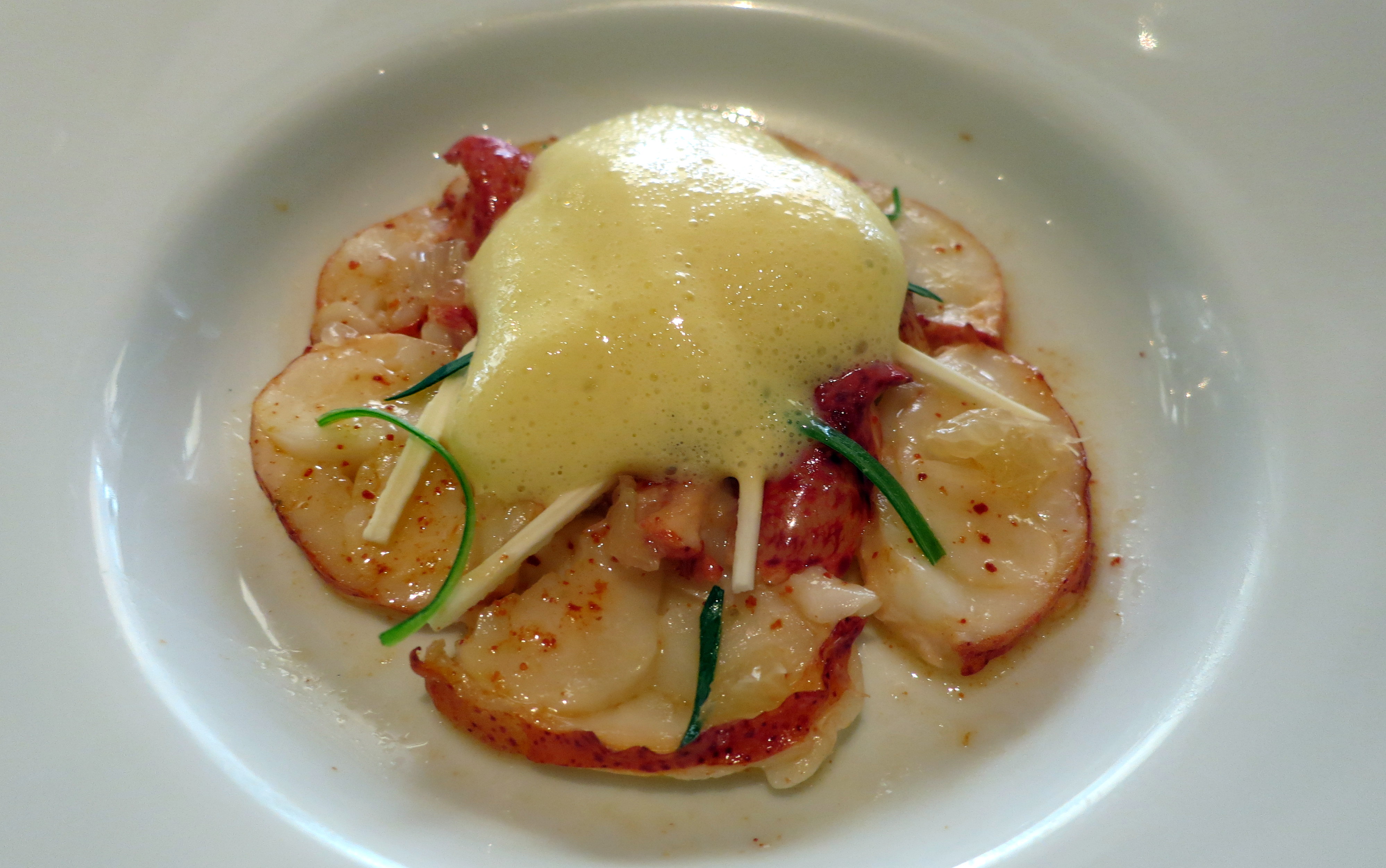 Warm Lobster “Carpaccio”; Ruby Red Grapefruit and Heart of Palm,Verjus Sabayon