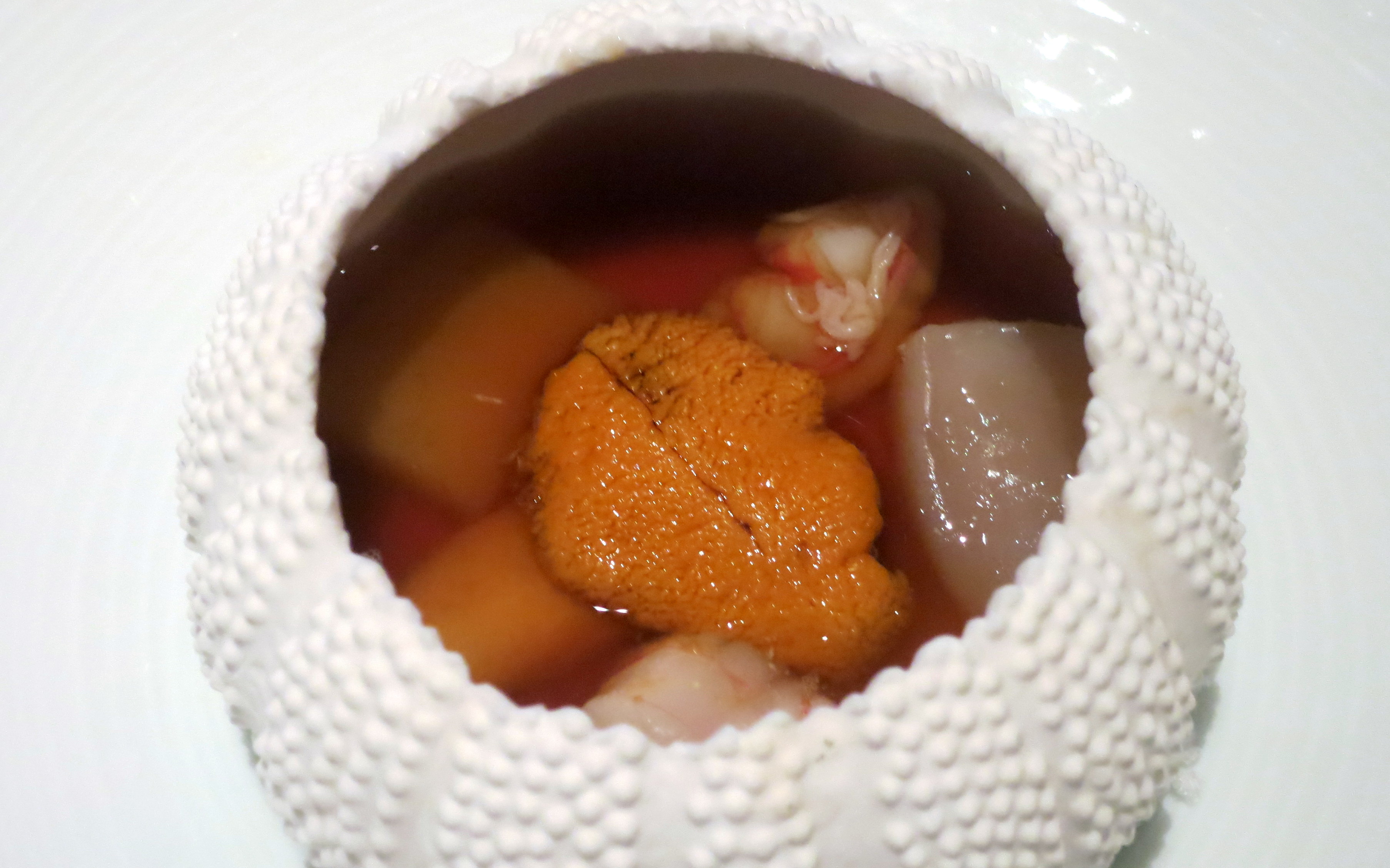 Shellfish Medley; Yuzu Scented Custard, Smoked Bonito Broth