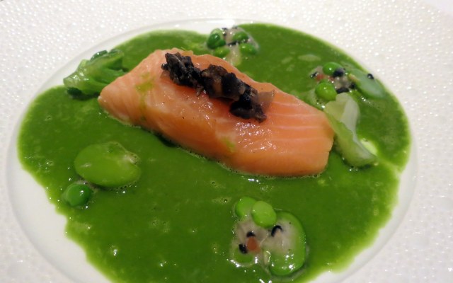 “Ultra-Rare” Arctic Char; Truffled Peas and Favas, Butter Lettuce-Tarragon Emulsion