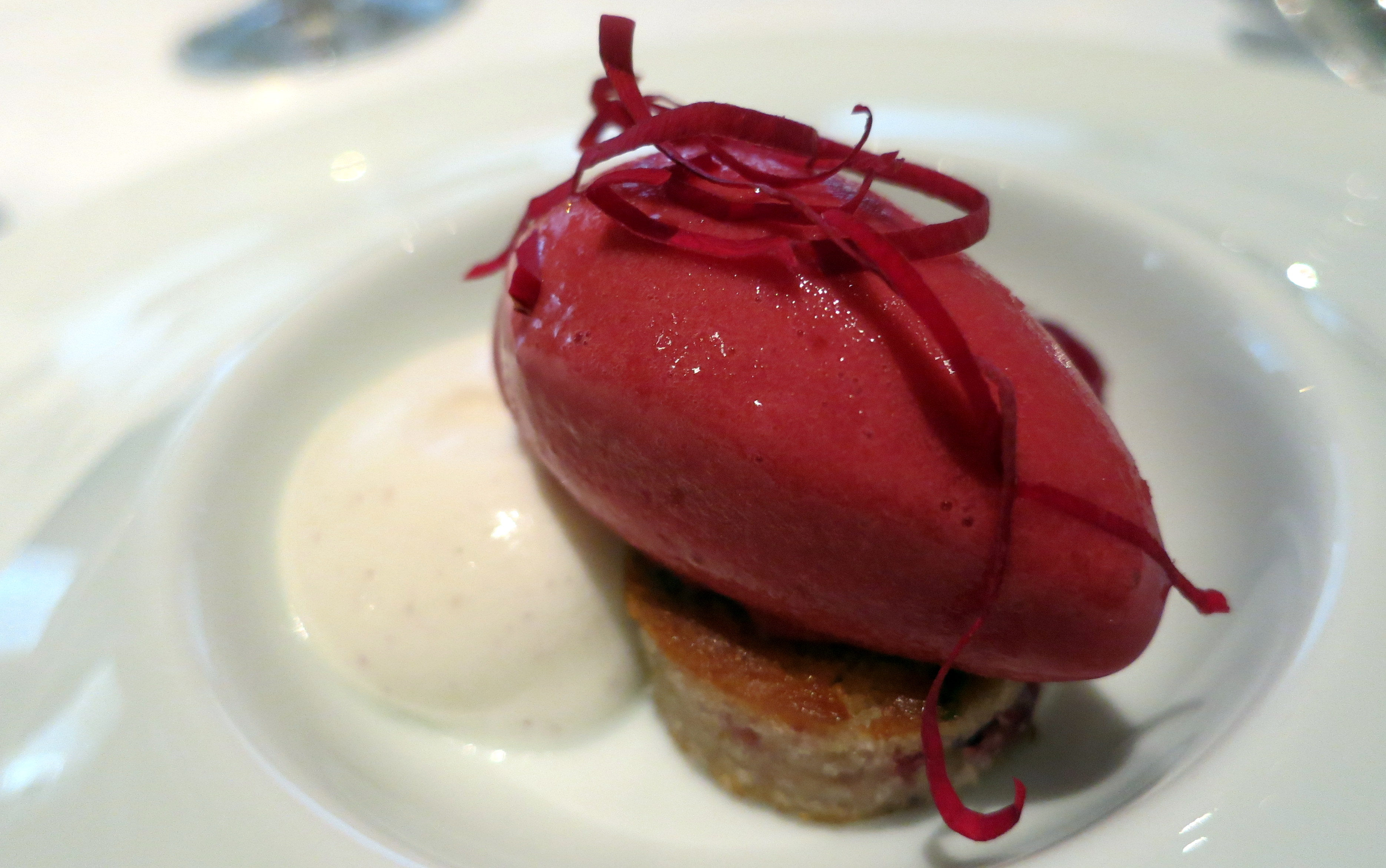 Lychee Gelée, Rose Emulsion, Raspberry Sorbet