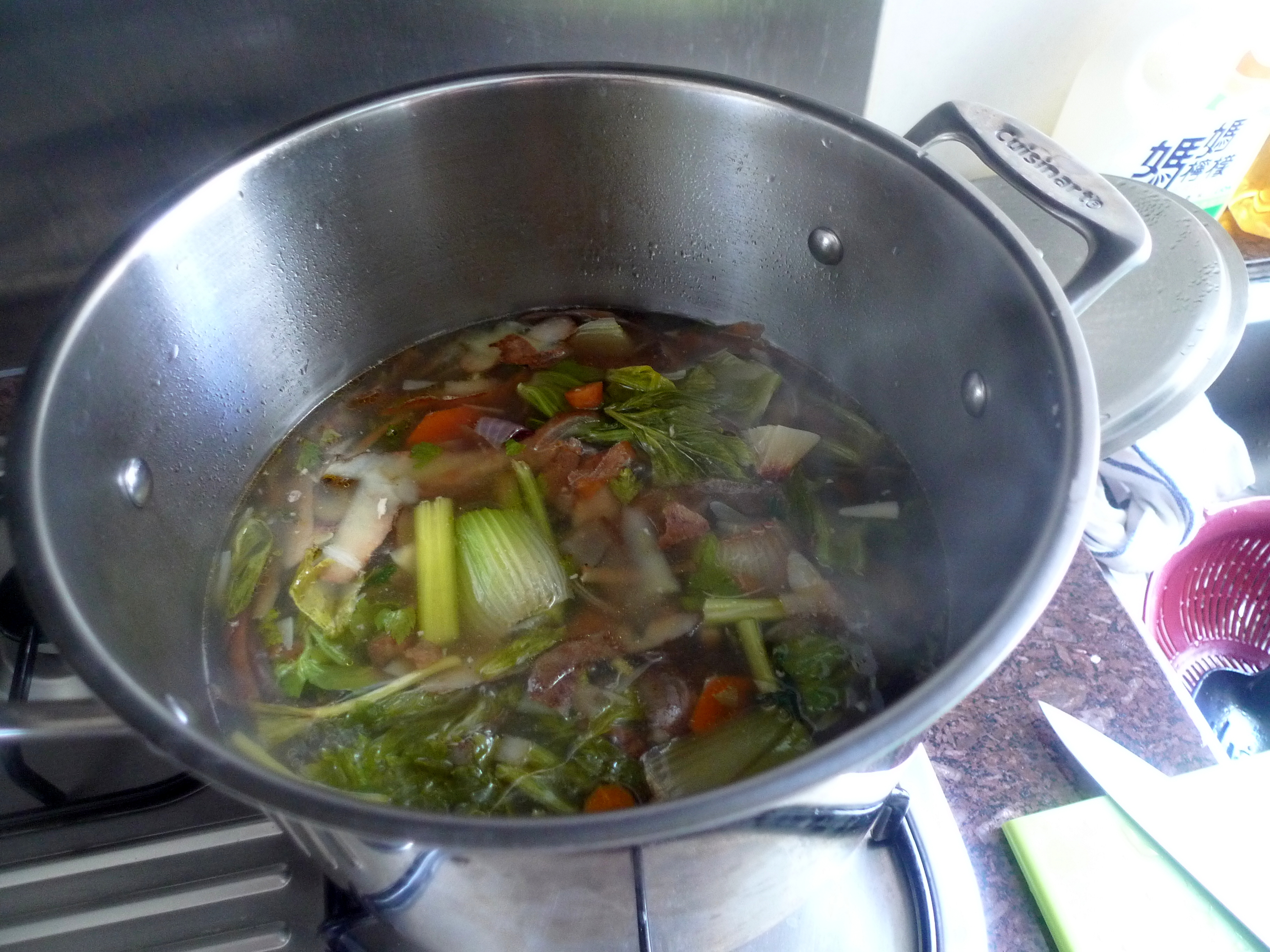 Since I moved to Singapore, one of the most difficult things to adapt to here has been the weather. Going from the intense humidity outside and the full blast air conditioning inside has revealed my immune system is really not up to par, and sadly I have gotten sick almost on a monthly basis. During my latest battle with a cough, I was just starting to wean myself off my liquid diet (not the fun kind) and wanted to make some heartier soups to whet my appetite. I was perusing soup recipes online and like magic, Closet Cooking just happened to publish the Tasty Soups ebook! There are plenty of fancier soups in the book, but I just wanted something simple and healthy — like a classic chicken noodle soup.