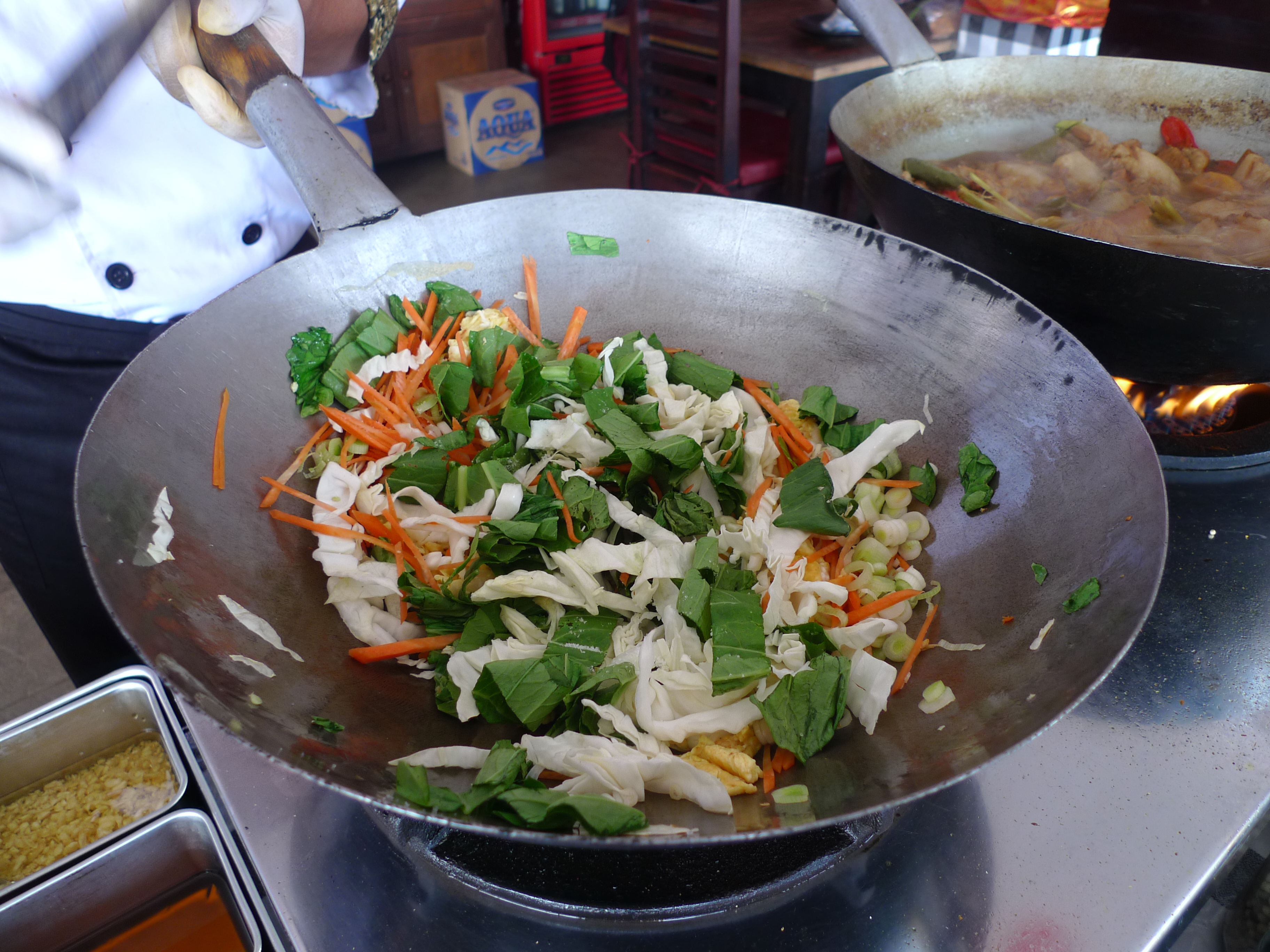 Every country has their own version of Mee Goreng.  I am not a huge fan of the one that is often found in Singapore hawker stalls due to its very unnatural fluorescent red color… however, I do love the Indonesian version which I was first introduced to during my Balinese Cooking Class.  The incorporation of the sticky, sweet soy sauce and spicy sambal made for a delicious stir-fried noodle dish that was savory and tangy with a kick.