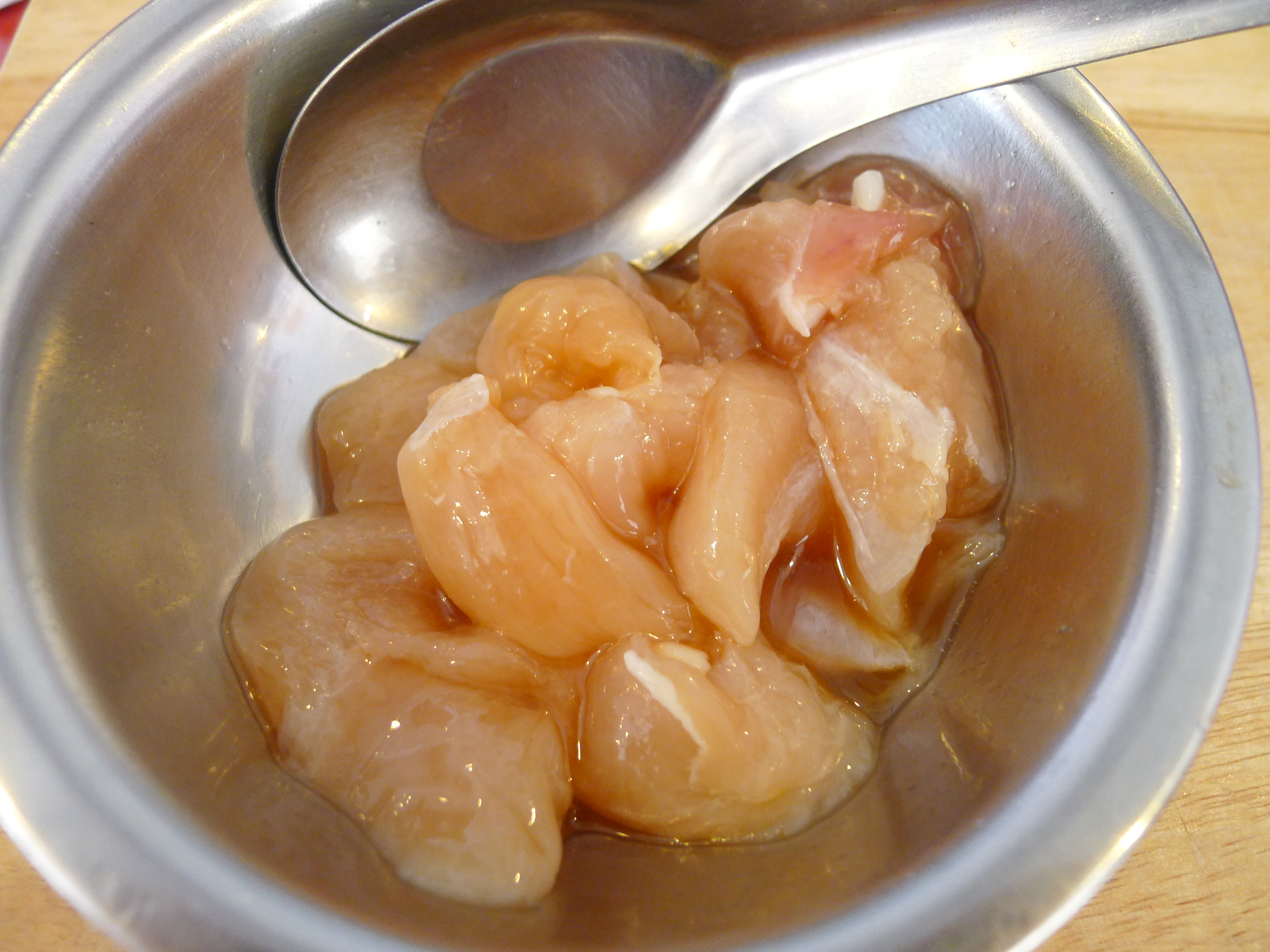 Marinate the chicken with 1 tsp each of Chinese cooking wine and oyster sauce. Let rest for 5 minutes. Mix the marinated chicken thoroughly with flour before frying.