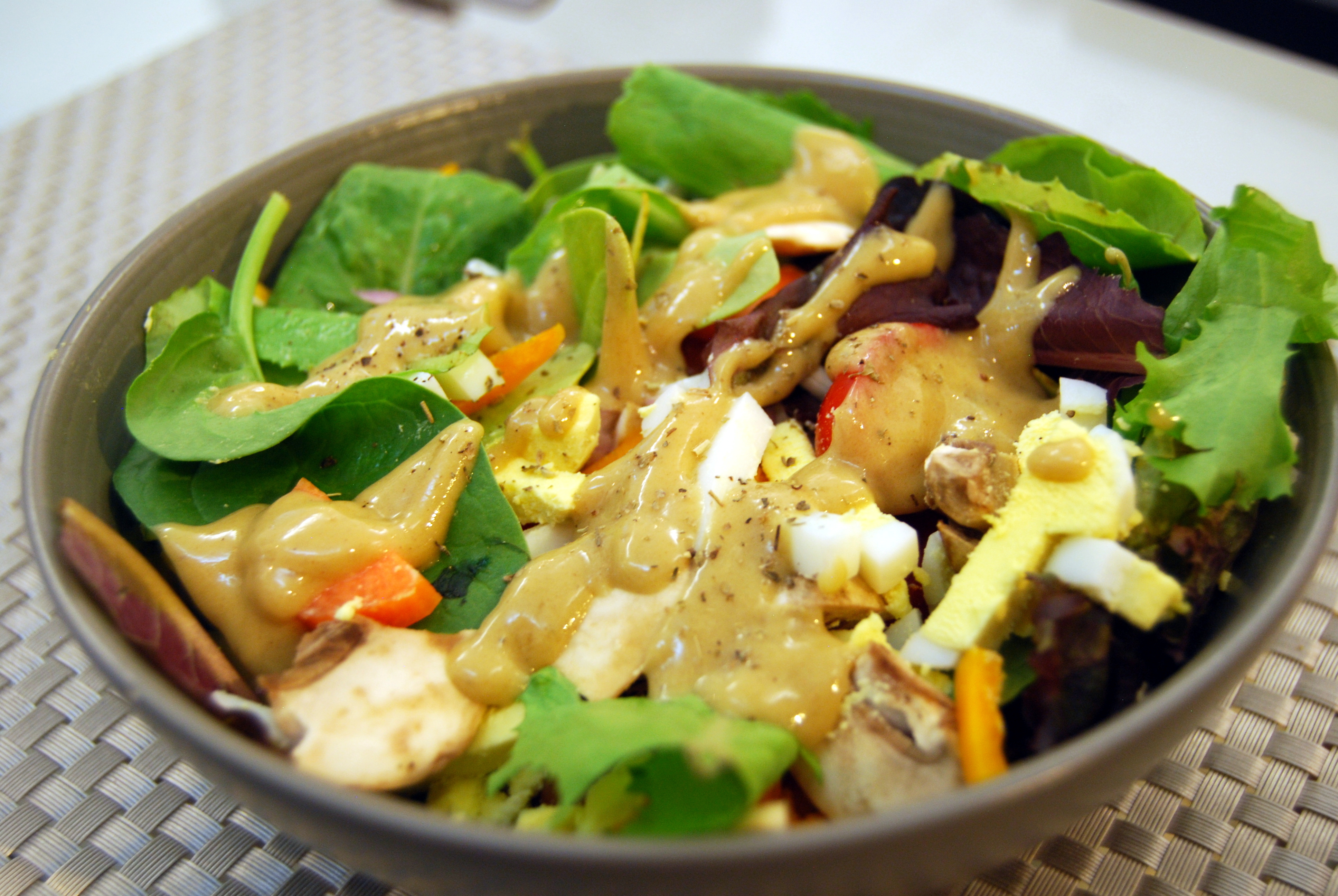 During a recent grocery shopping trip, I was massively chef-peer-pressured out of buying a bottle of creamy Thousand Island dressing. My friend Andrei made me put back the overpriced bottle of imported dressing and I begrudgingly agreed to make my own dressings at home. The good (and bad) thing about home food prep is you are forced to realize exactly what goes into everything to make it taste so friggin’ amazing. Medium-length story short, I ended up finding a salad dressing recipe that wasn’t 90% mayonnaise. Heather’s Dish introduces a “fail-proof” Honey Mustard salad dressing that is spicy, sweet, tangy, smooth AND mayo-less.