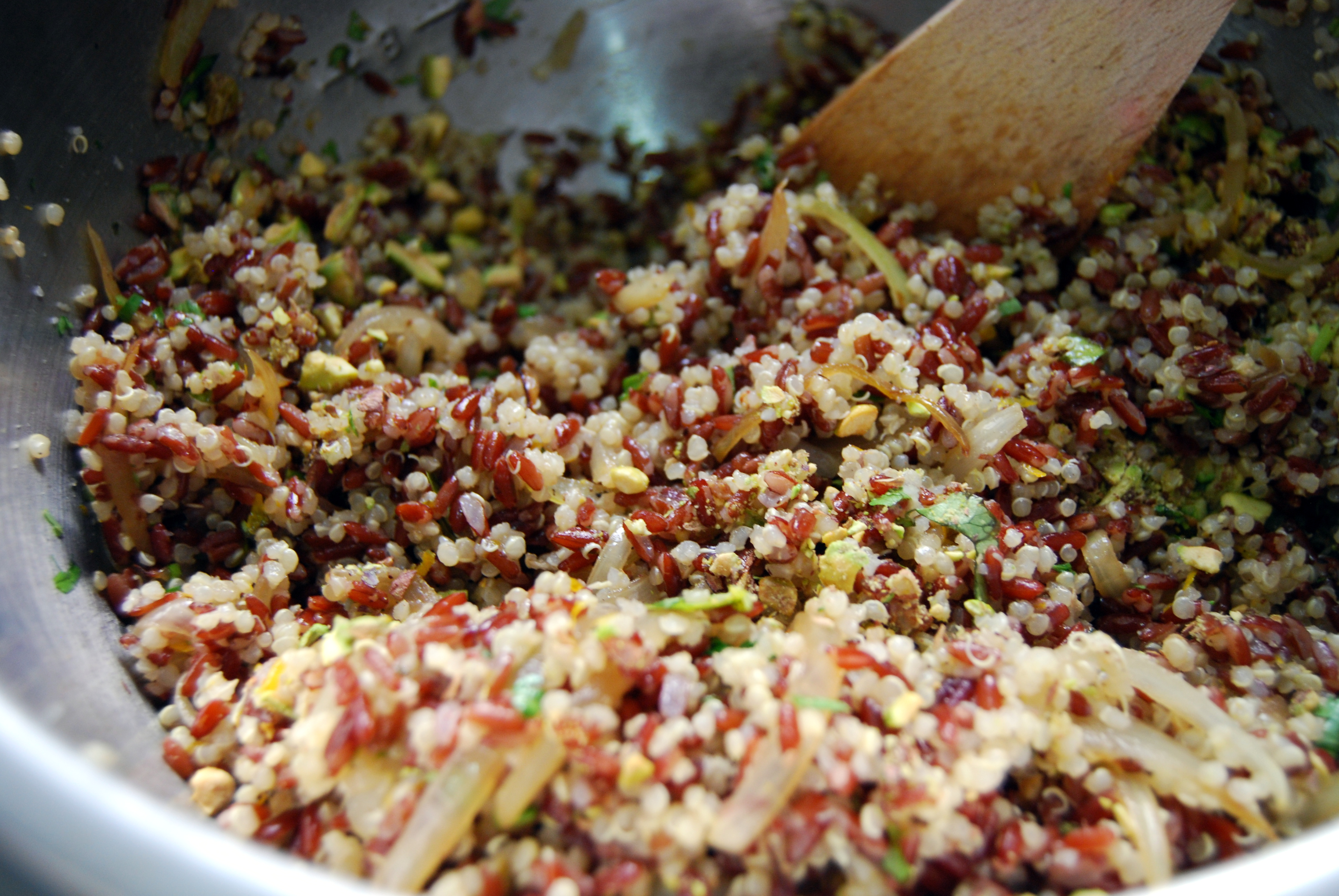 Red Rice and Quinoa Salad with Pistachios and Craisins (adapted from the recipe by Yotam Ottolenghi)