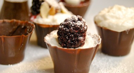 Chocolate Cups with Berries & Homemade Whip Cream