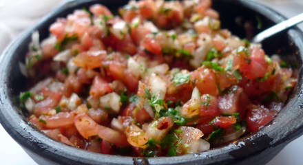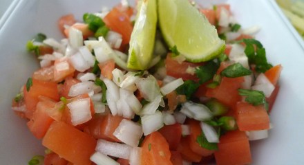 Pico de gallo, also known as salsa fresca “fresh sauce”, is a simple Mexican condiment made primarily of chopped tomatoes, onions, and chilies. Cilantro, lime or lemon juice, cucumber, radish, or mango can be added. Pico de gallo, which means “rooster’s beak” in Spanish, is a raw salsa in the sense that nothing is cooked, … Continue reading
